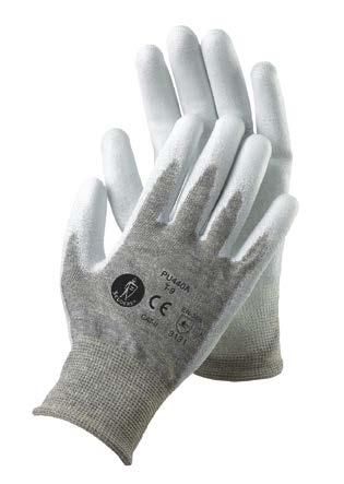Guante de nylón y fibra antiestática recubierto de poliuretano blanco en palma y uñeros. Galga 13. Disponible en varias tallas.