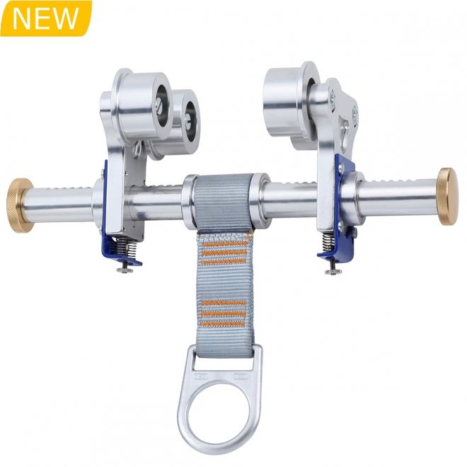 Punto de anclaje deslizante para vigas, regulable de 76-255mm. Fabricado en aluminio. Resistencia estática 15KN. Incorpora una cinta textil fabricada en poliéster con una anilla de aluminio para anclaje. Peso 3.535 g.